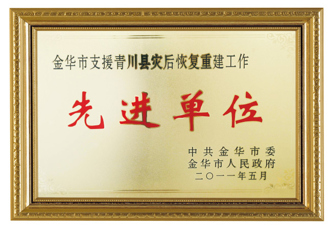 金華市支援青川縣災后重建工作先進單位